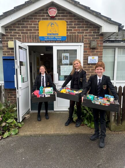 On Monday (14th October), Henry, Grace and Morgan-Rose from Kingsgate House accompanied Mrs Treacher and Mr Buchanan to deliver our donations to their distribution centre. The donations were gratefully received by the food bank staff and will be used to support many families who are struggling within the Canterbury district.