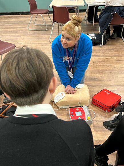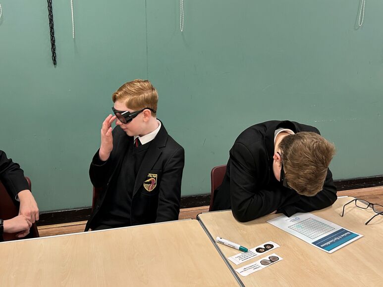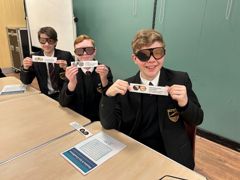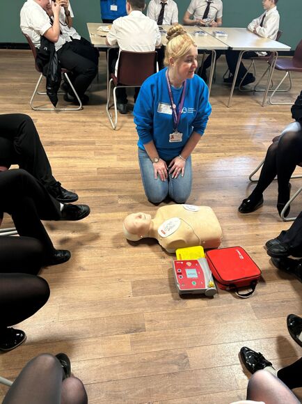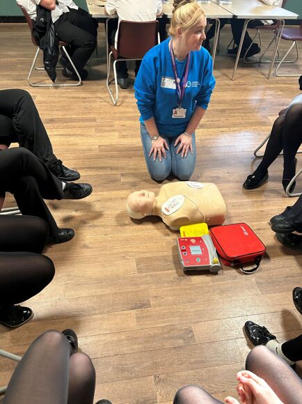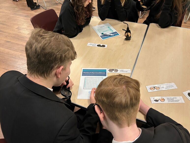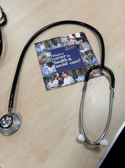 The University brought in some of their simulation equipment used as part of the teaching, including, sugar cube challenge, eye condition glasses, CPR manikin, Bob with a defibrillator and stethoscopes.