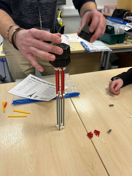 The workshop tests student’s basic employability skills. Seeing how well they work as a group when set an engineering-based challenge of building a bridge using Connex which will hold weights on a platform. It also tests how they work under a time pressure.